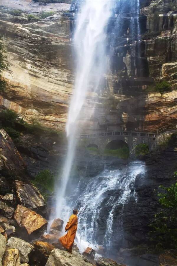 (焦作云台山的云台天瀑,落差314米,高度差可以下方人群为参照物)