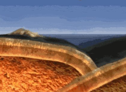 愈来愈大的古湖终于切开山体