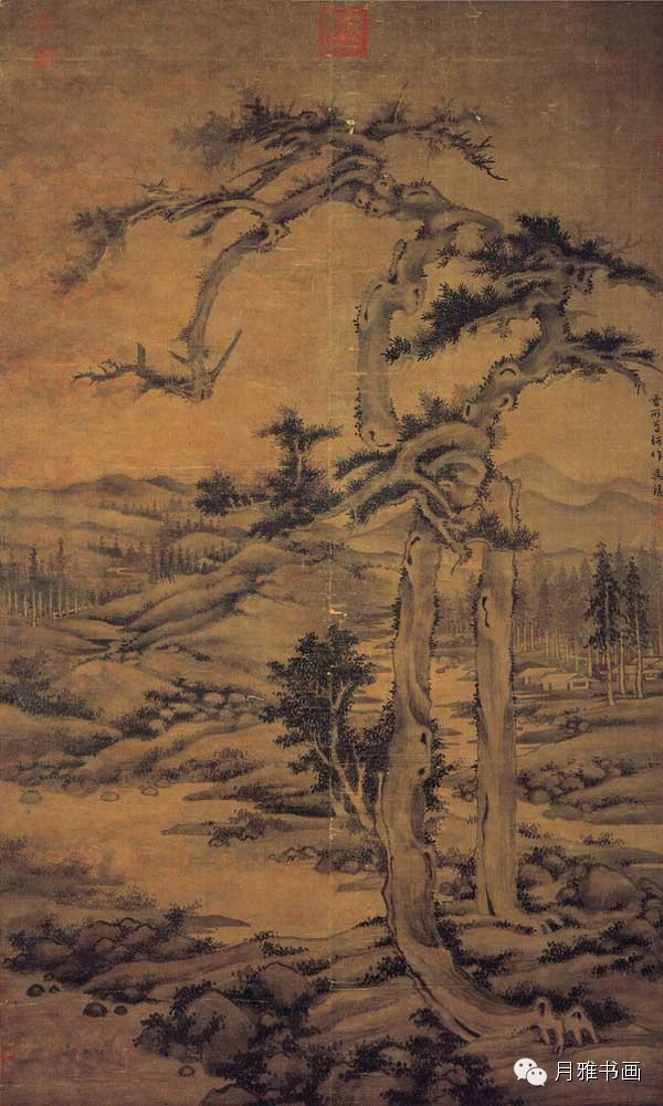 图说中国山水画简史-雙松圖軸元 吳鎮