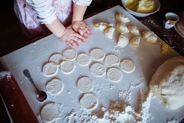 有趣的是,波兰人包饺子不用擀面杖,而是用手将面拍平,再用杯子口一块块抠出饺子皮来。此外,波兰的肉馅饺子要先煮熟了馅再包皮,这一点和中国饺子的做法正相反。